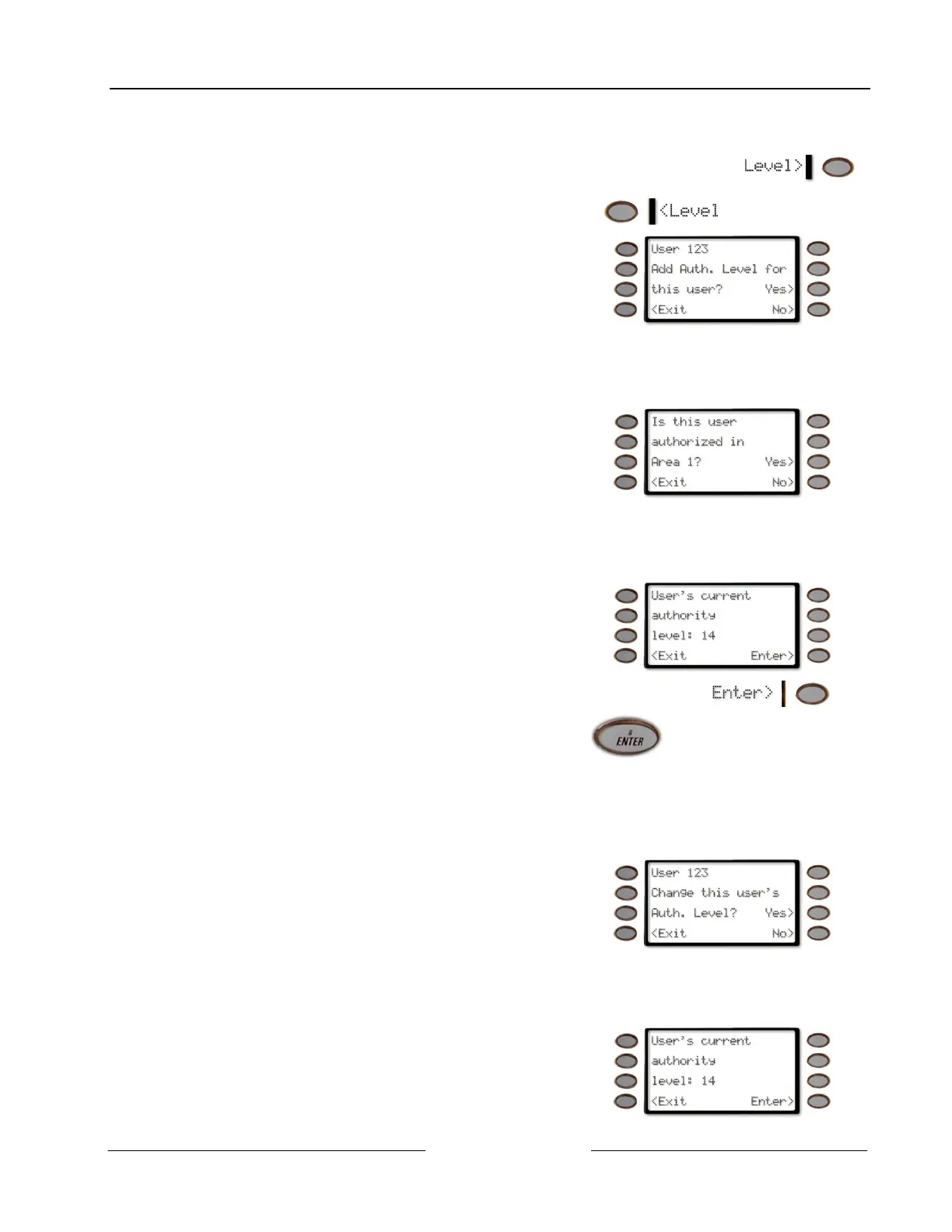 Press the No> soft key if the user isn’t authorized in Area 1 and proceed to display user’s