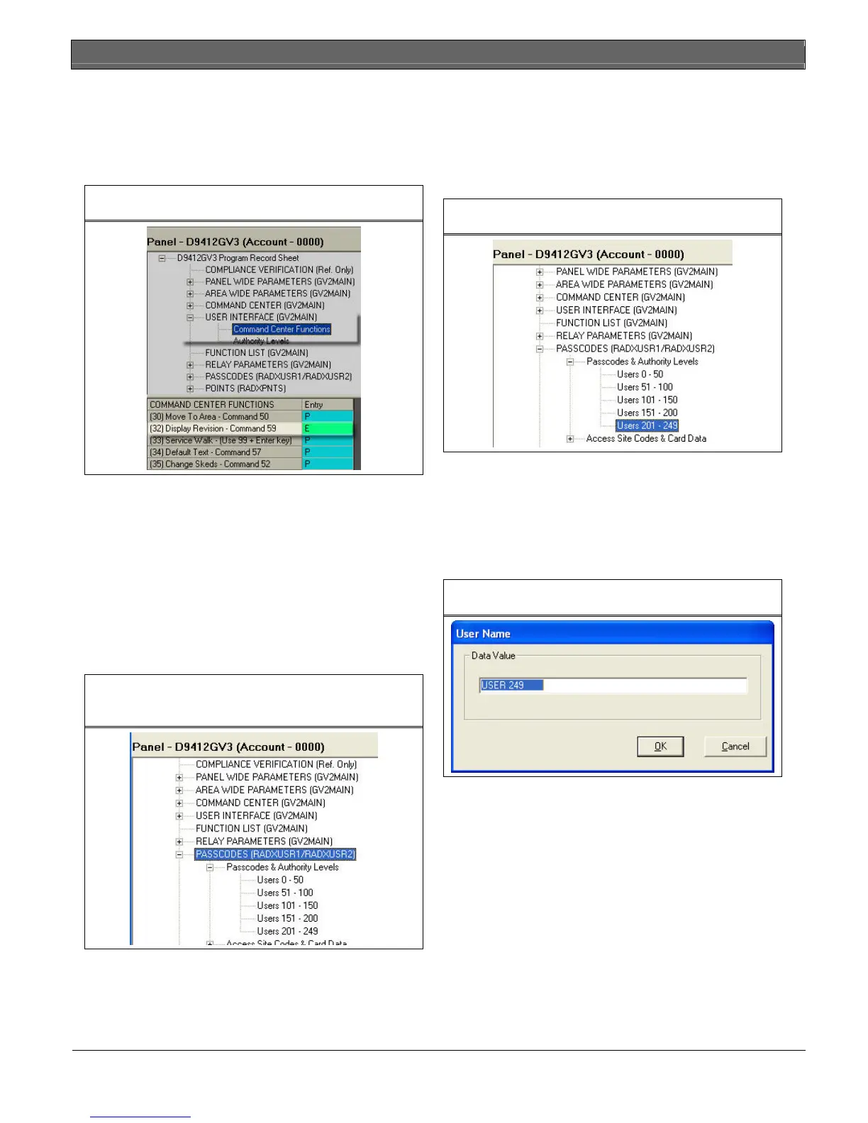 Scroll to User 99 for the D7412GV3, D7412GV2,