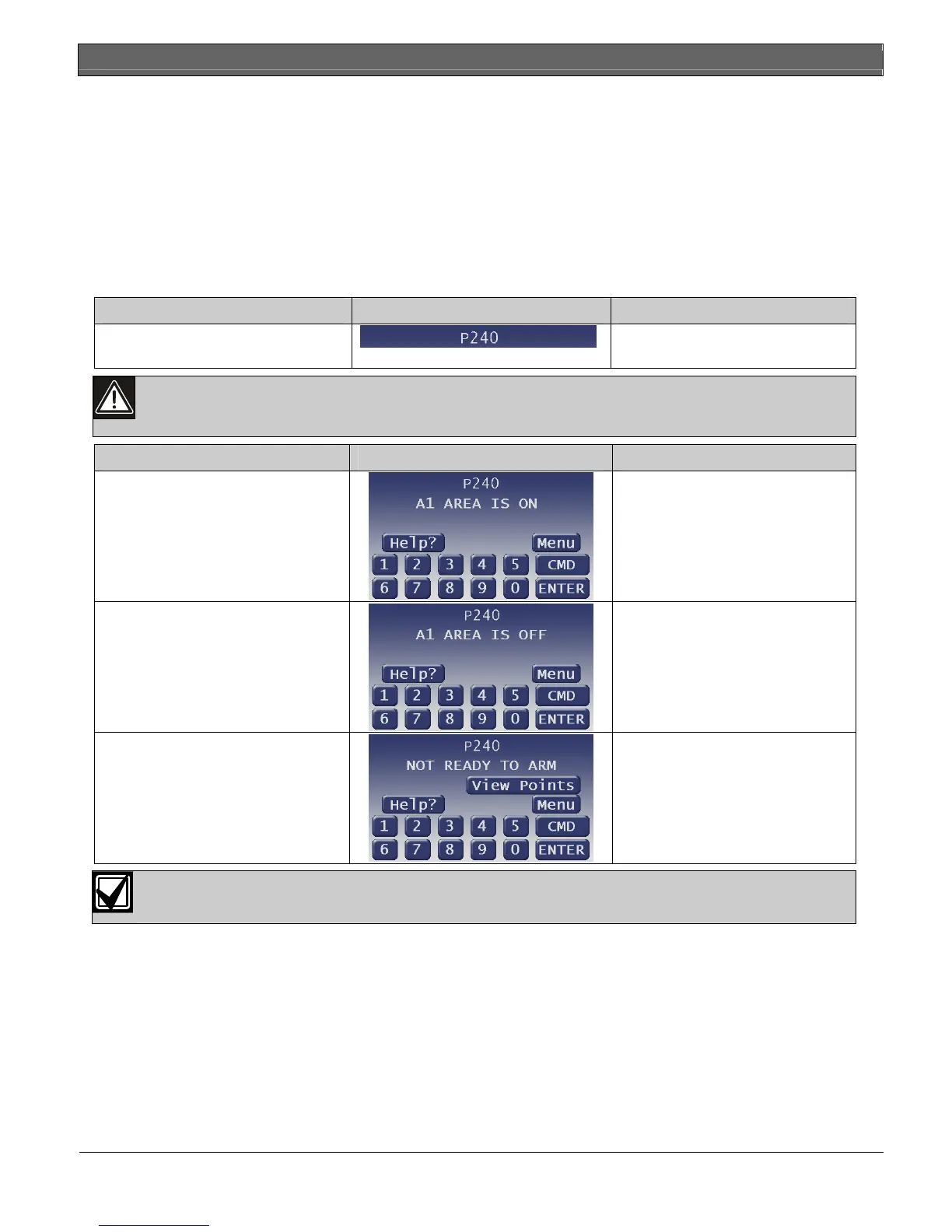 This manual uses the default idle state displays for examples of these idle states. Your security company might