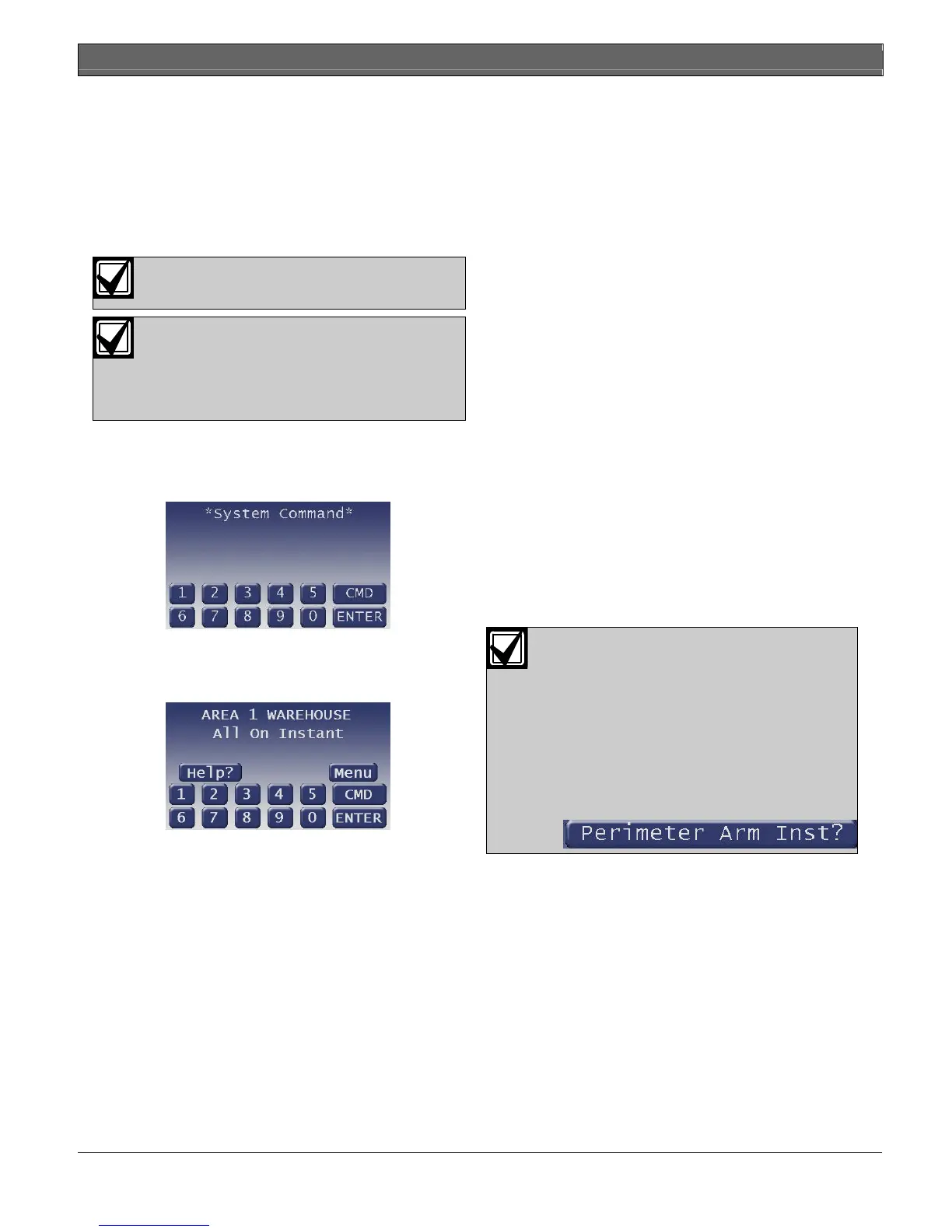 allows all or selected areas to be armed instantly.