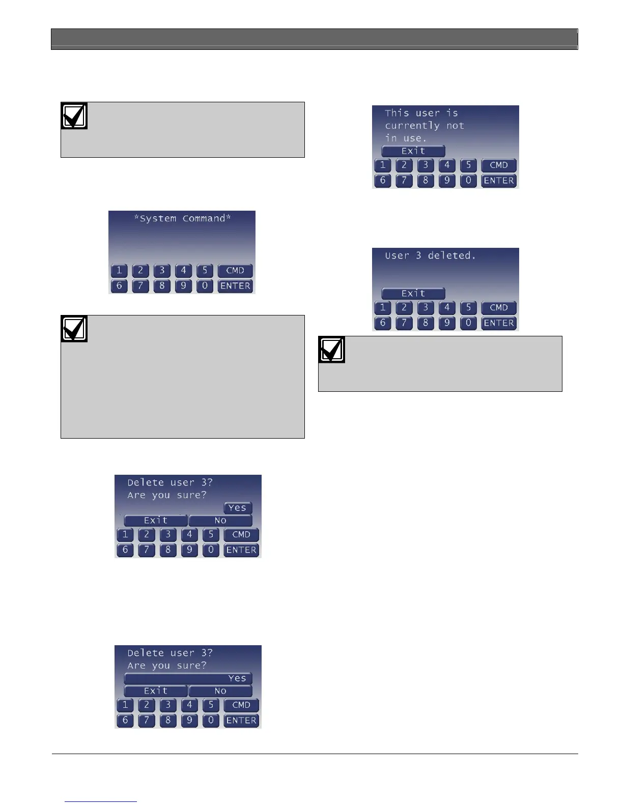 system, the display shows Delete User 3? Are