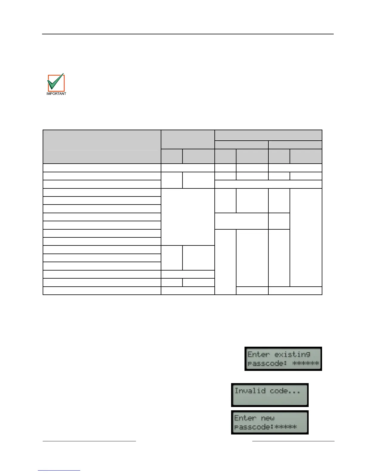 If the passcode entered does not match the existing passcode, a 3-beep