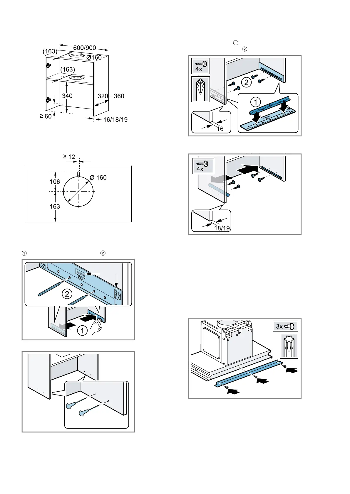 Place the installation aid on the inside of the cabinet