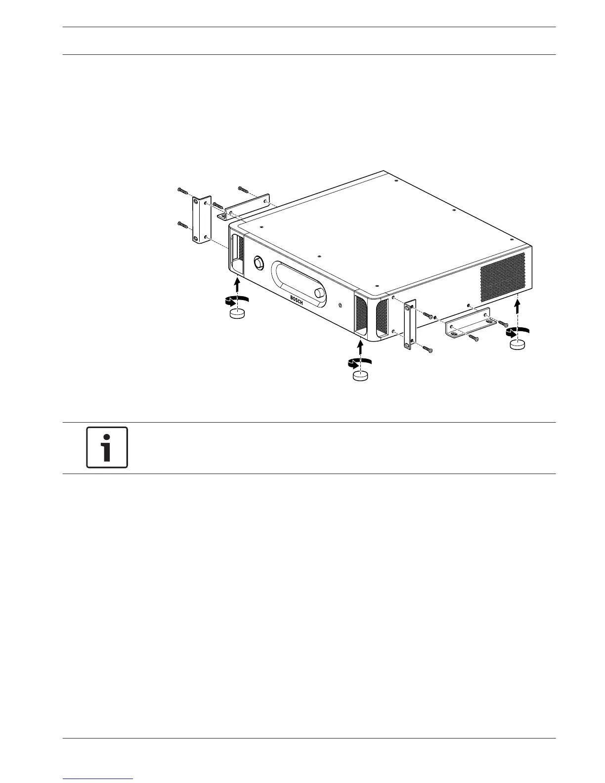 Install the central control unit in a 19 inch unit rack system or on a flat surface. Four feet and