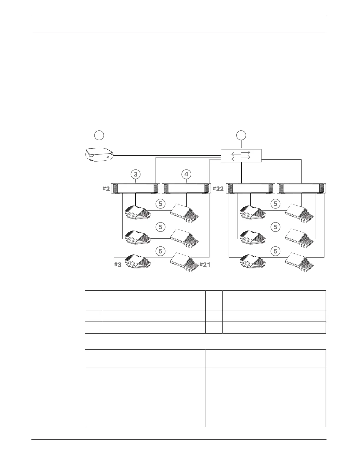 In the example below up to 19 (22 - 3 = 19) discussion devices can be connected.