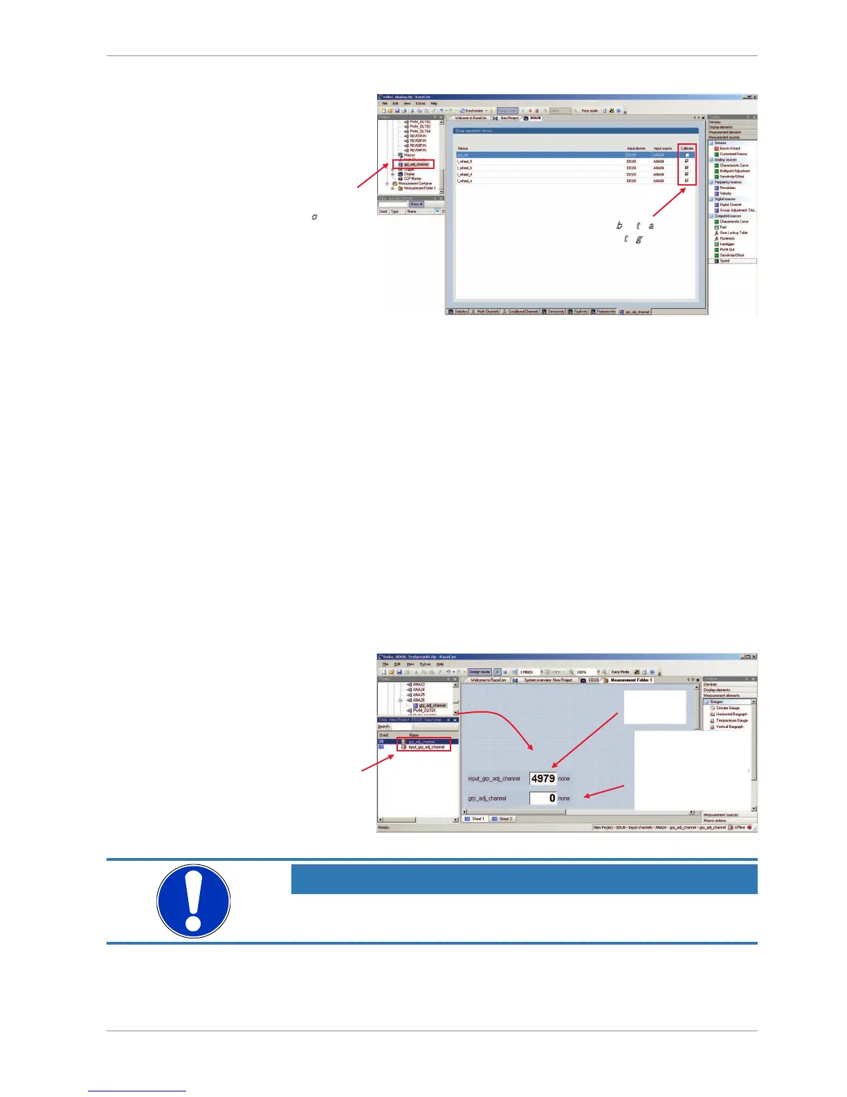 The selected measurement channels are added to the group adjustment event.