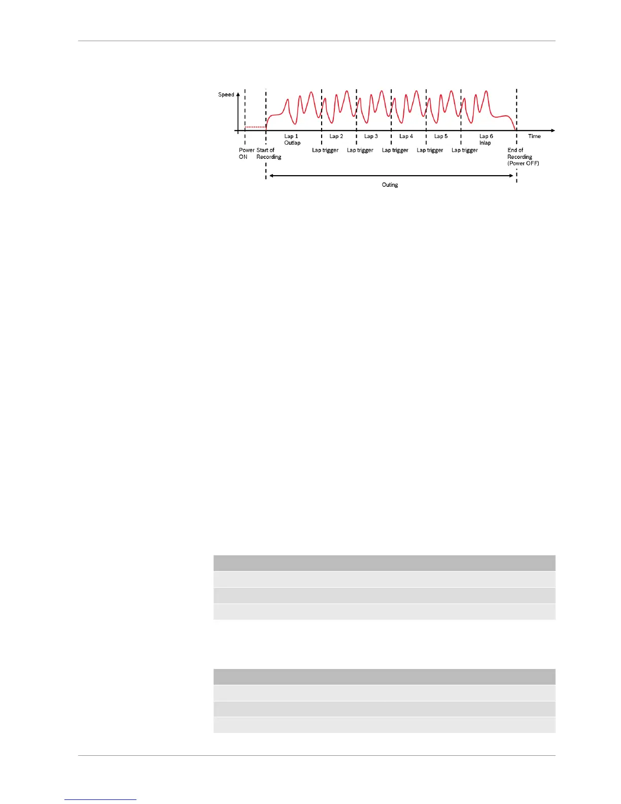 – Reception of valid lap trigger: recording of lap completed, new lap starts