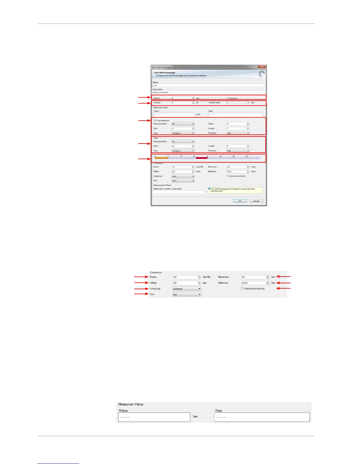 a) Enter CAN message ID. If extended IDs (29 bit) are used, check the box.