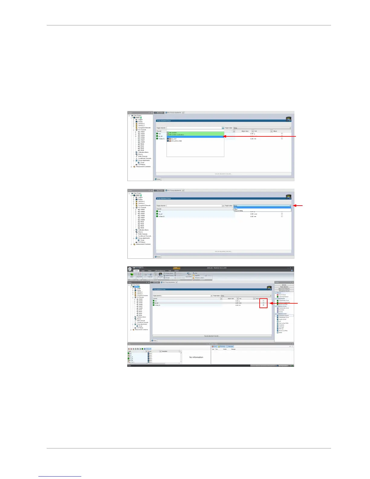 The selected measurement channels are added to the group adjustment event.