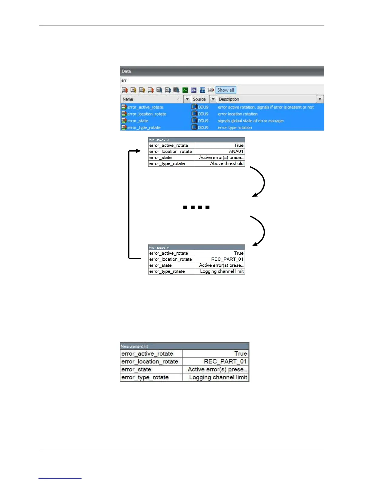 measurement sheet (while more than one error is active) and watch the values