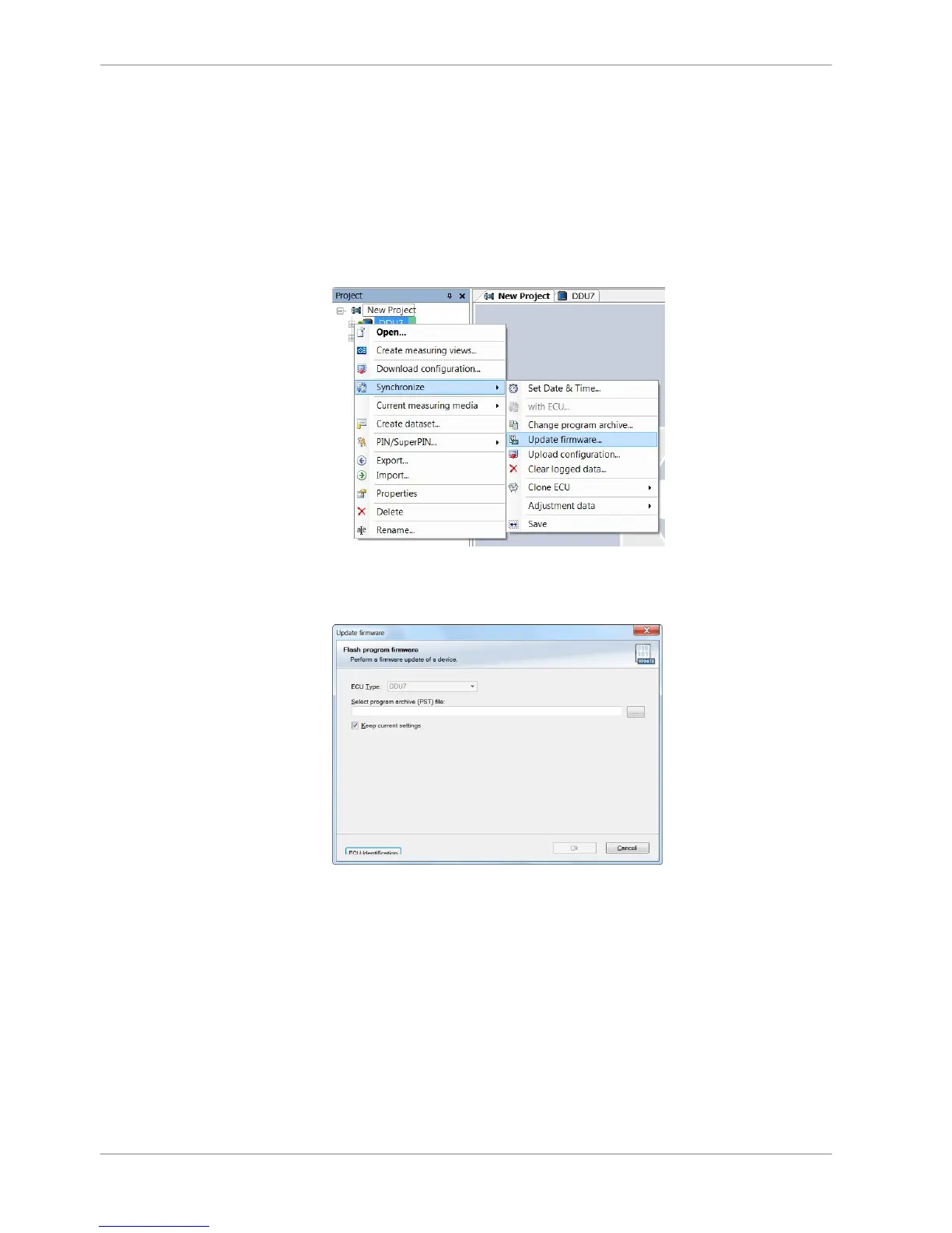 Firmware update is only possible if the DDU 8 is connected to RaceCon.