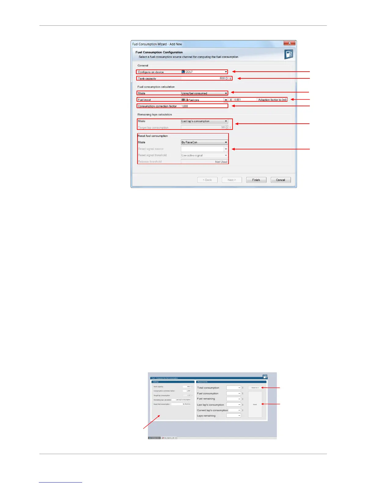• using target lap consumption (entered in the field ‘Target lap consumption’)