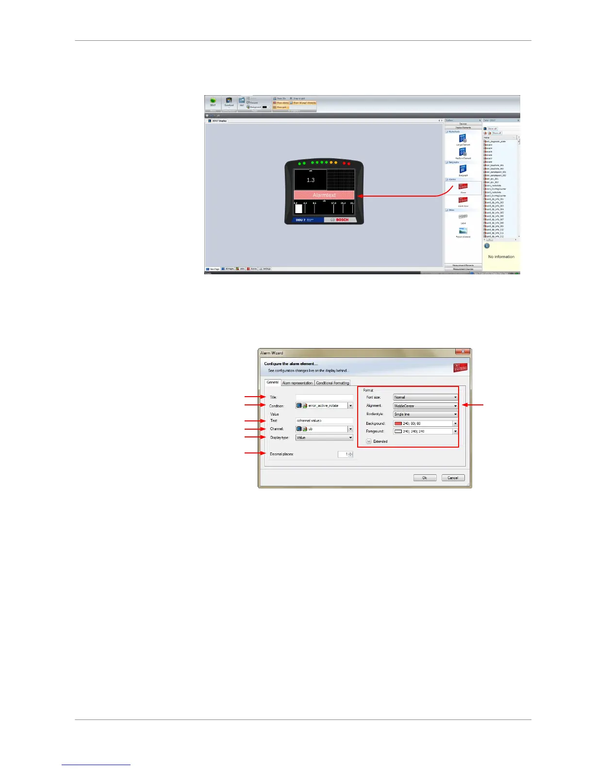 Configuring an ‘Alarm’ (text) display element