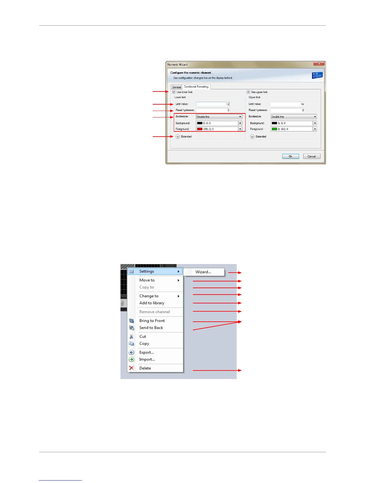 individually. If a 'Bargraph' display element is used, its colors can also be changed.