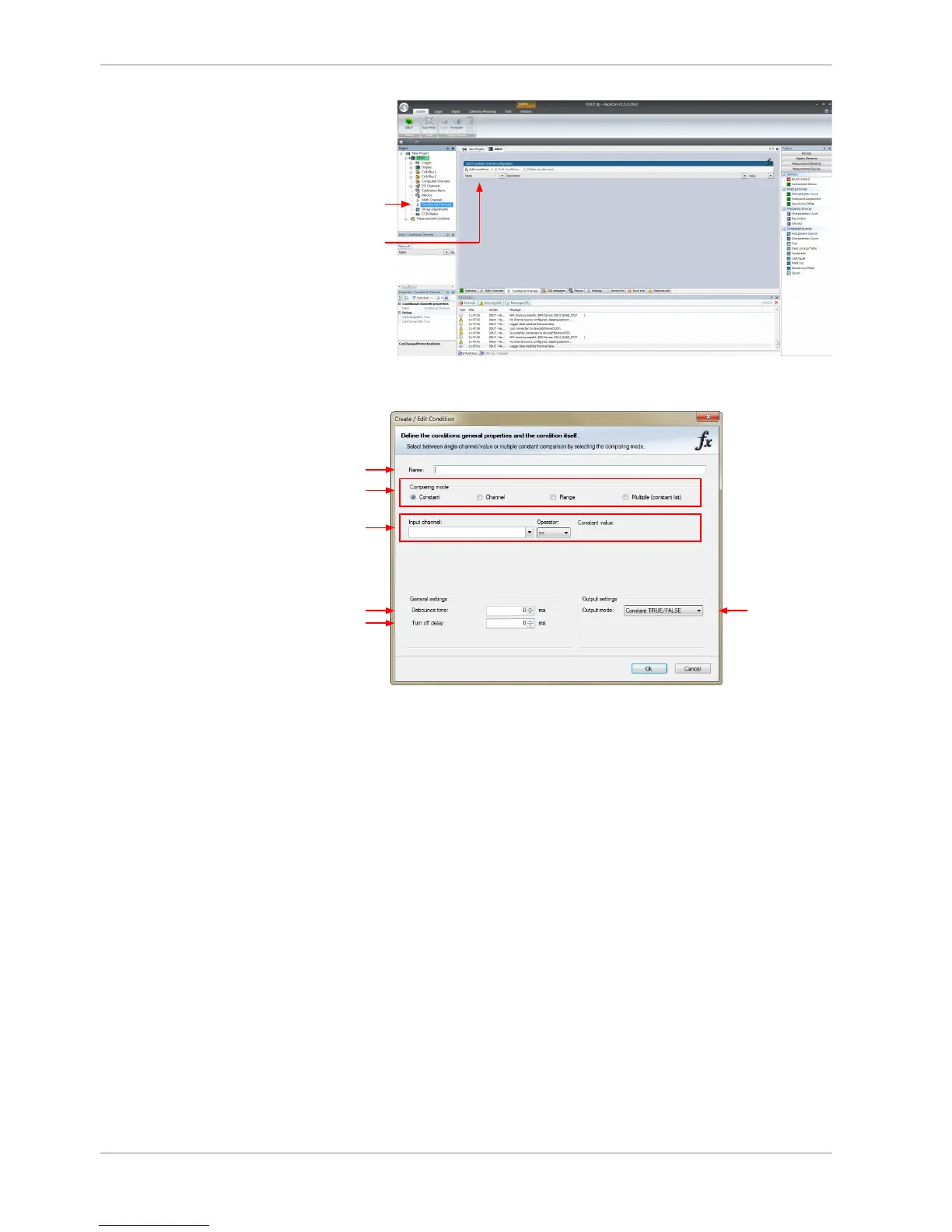 - Constant: Choose the measurement channel or condition, the operator and enter the value of the channel.