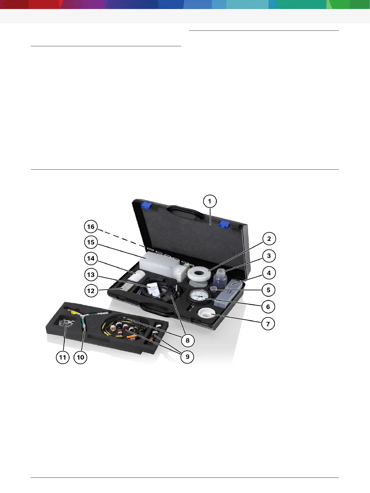 13 Recipiente con tiras de prueba, para comprobar si hay diésel