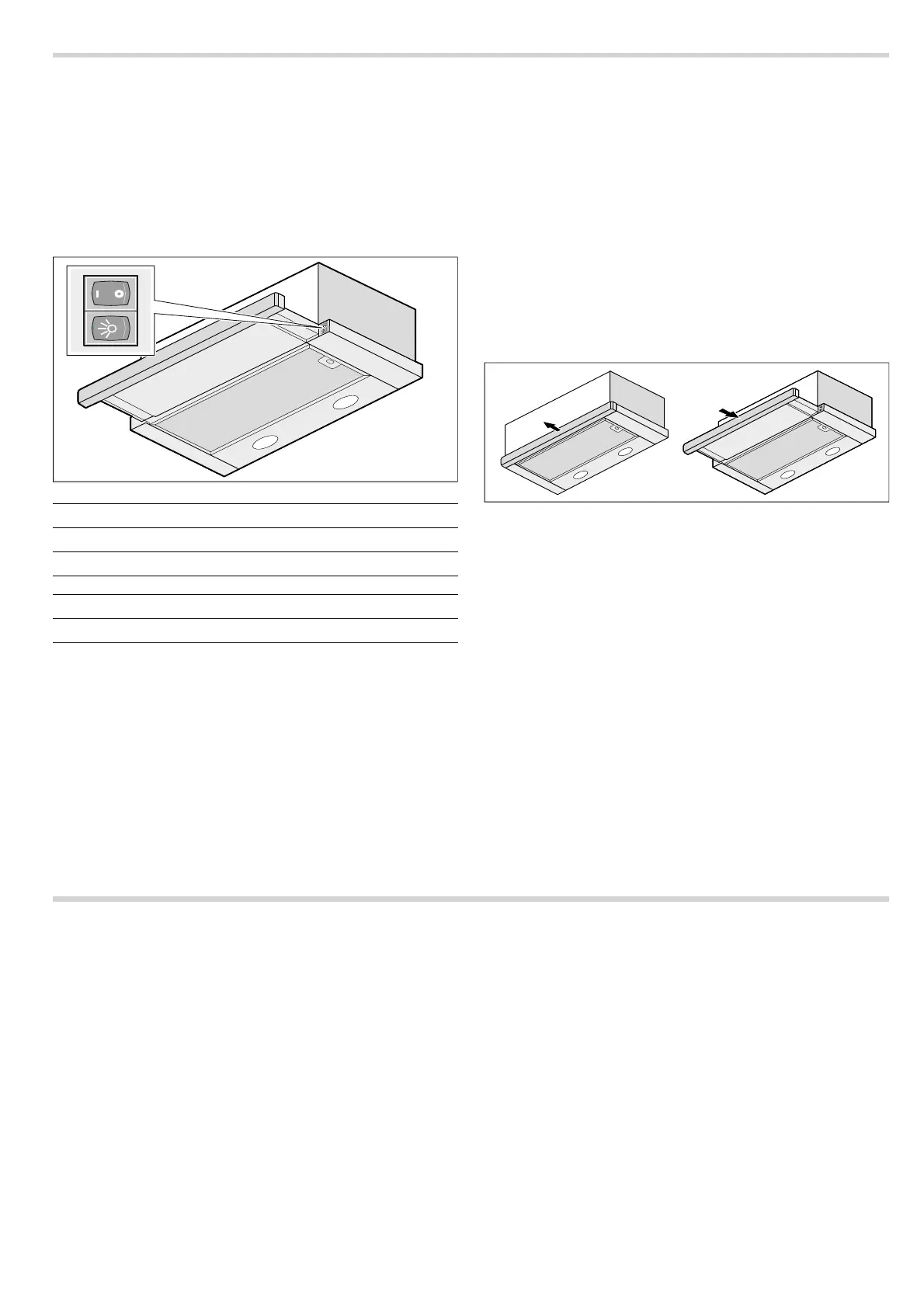 Note: The extractor hood and the lighting will switch off when