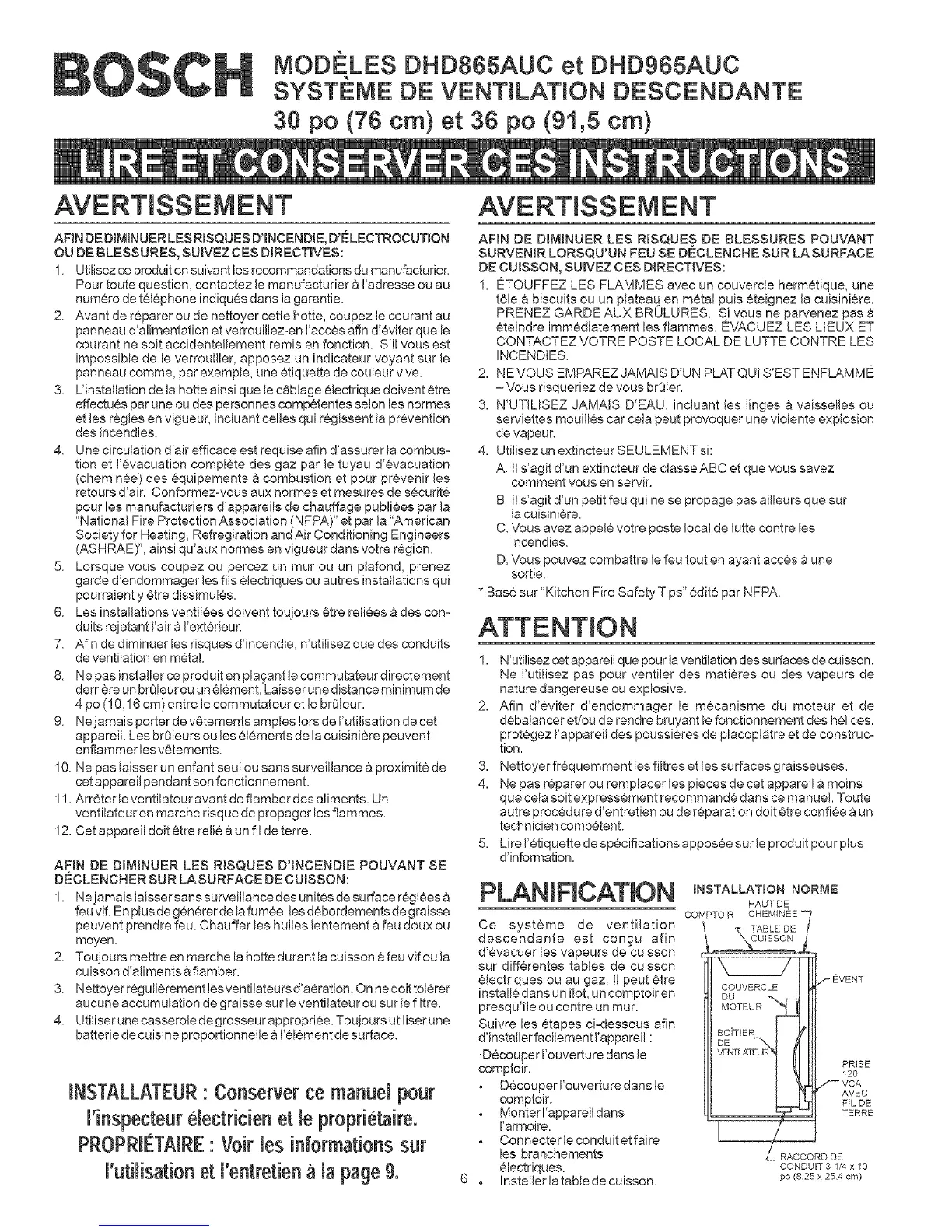 1. N'utilisez cet appareil que pour la ventilation des surfaces de cuisson.