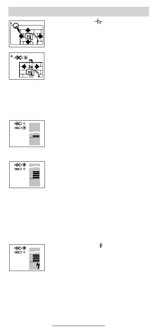 3 lyser. Strekanvisningen på displayet 4 reagerer.