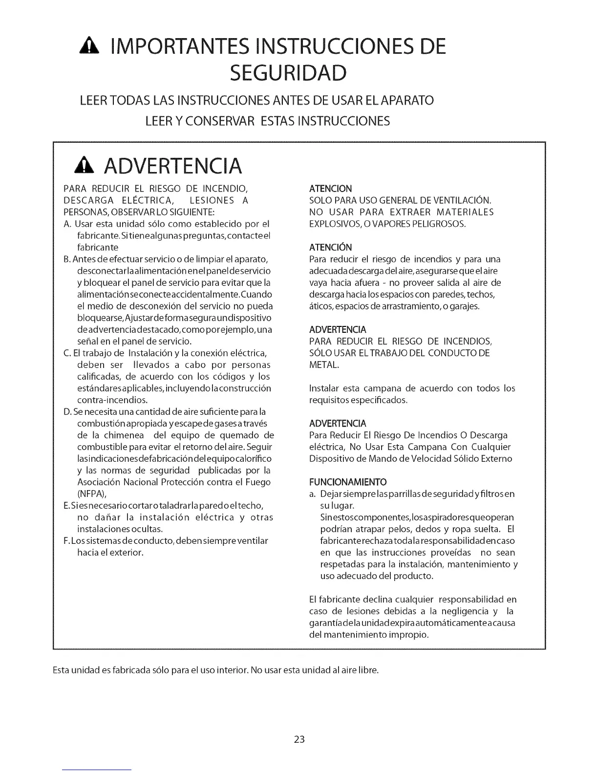 A. Usar esta unidad s61o como establecido por el