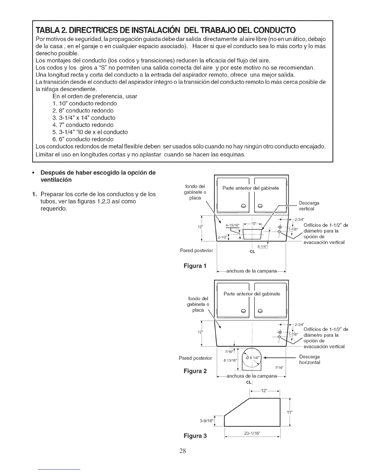Una Iongitud recta y corta del conducto a la entrada del aspirador remoto, ofrece una mejor sa!ida.