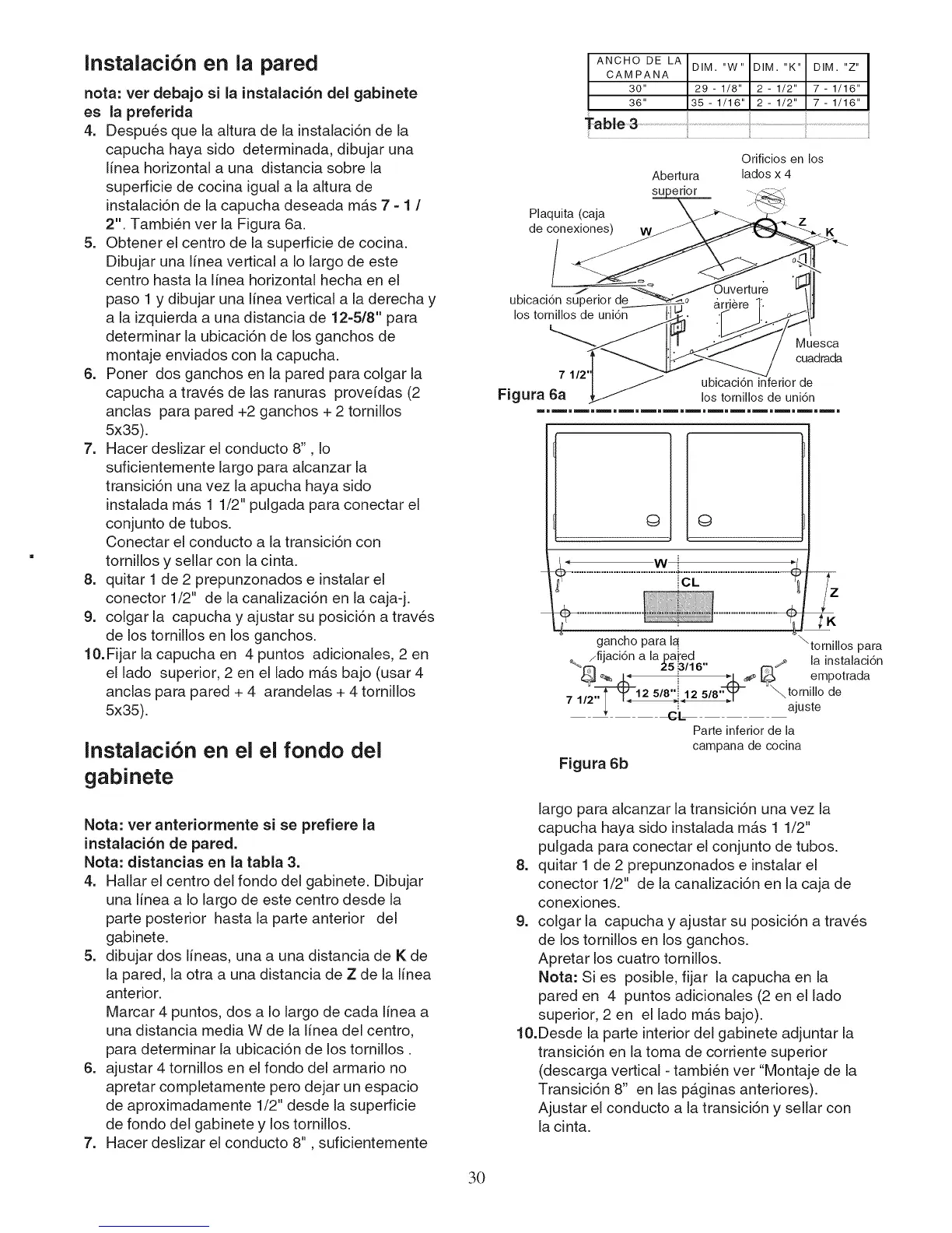 instalaci6n de pared.