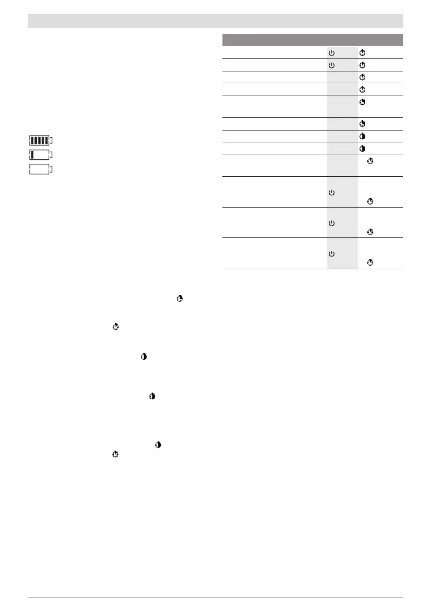 De accu-oplaadaanduiding (g) geeft de laadtoestand van de