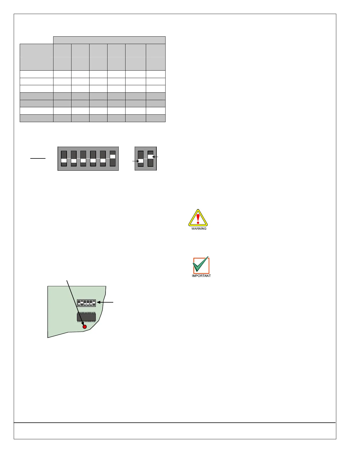 Table 8: DX2010 DIP Switch Settings