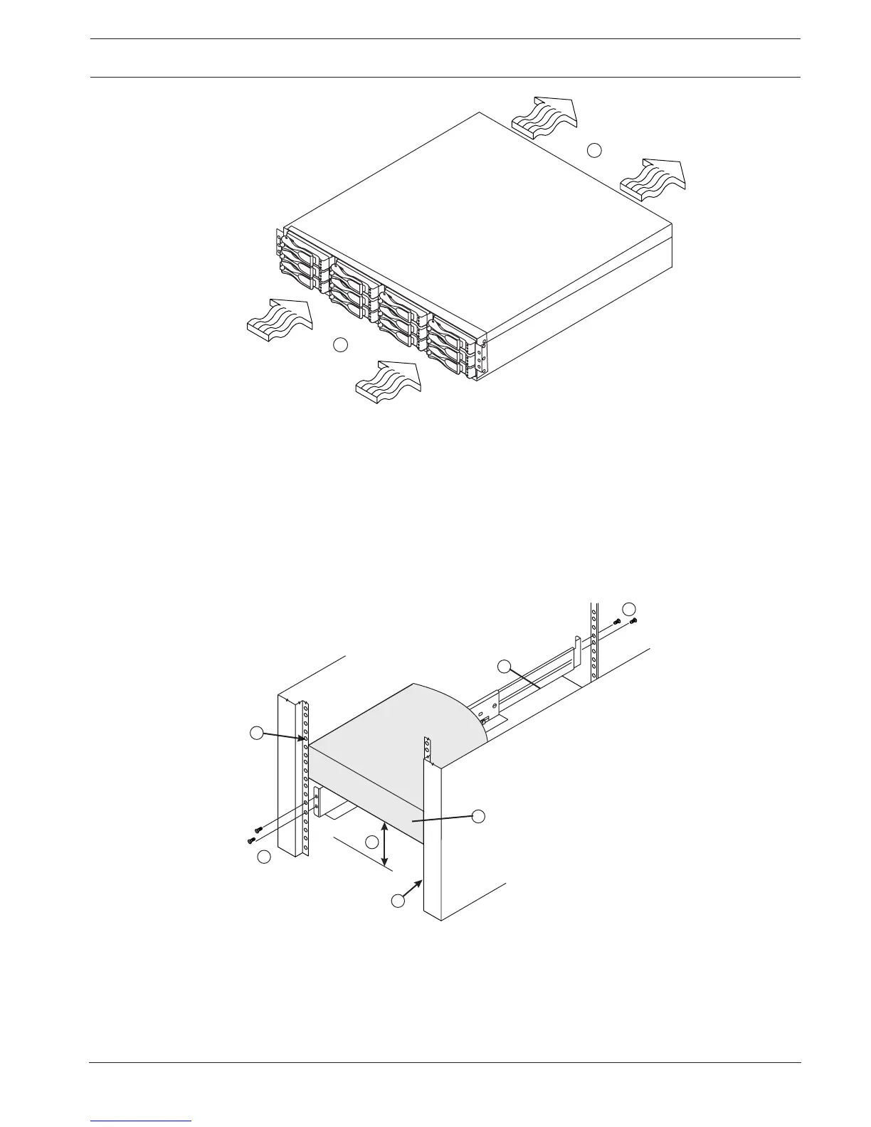 – If you are installing the mounting rails below an existing tray, allow 8.7-cm (3.4-in.)