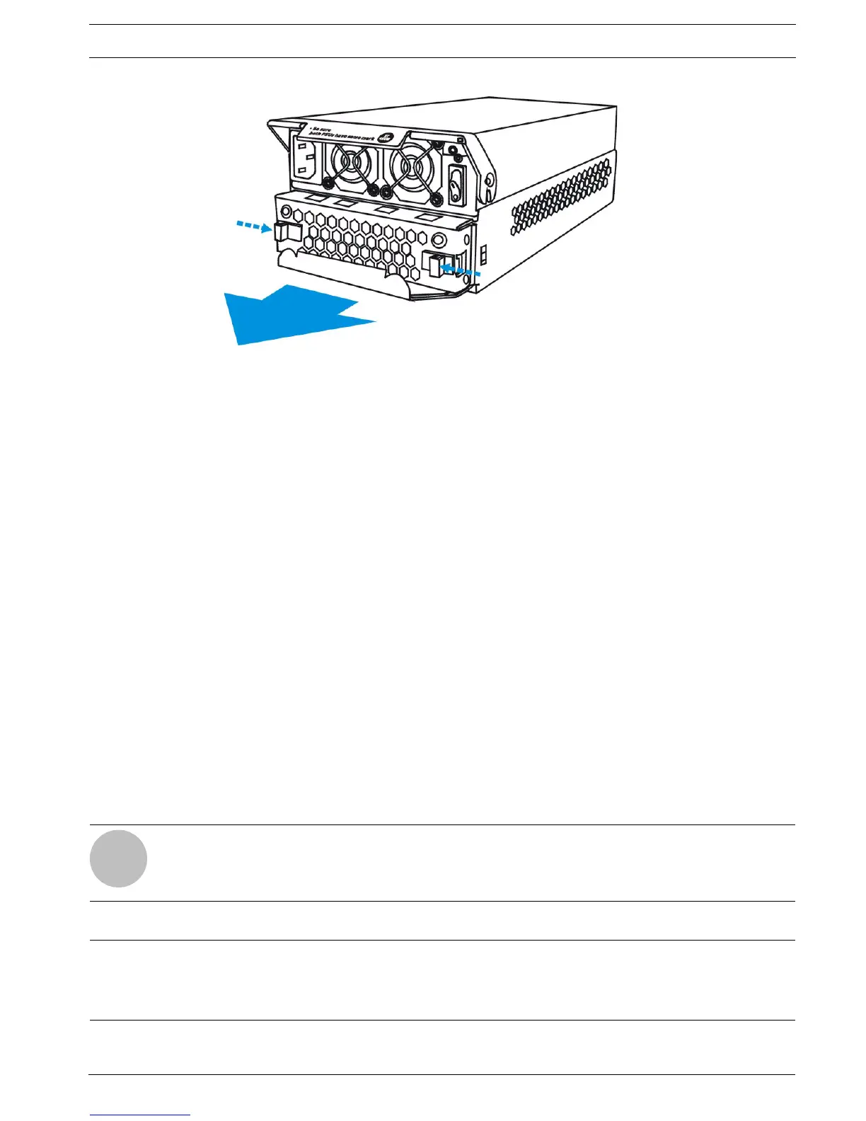 pable, single-fan cooling modules. Two are located below the PSU modules. The third is