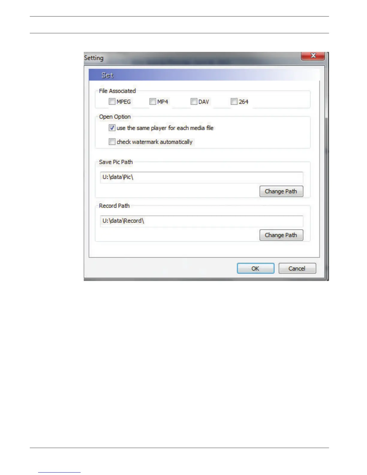 – Open Option – choose here how to open each file with the player: