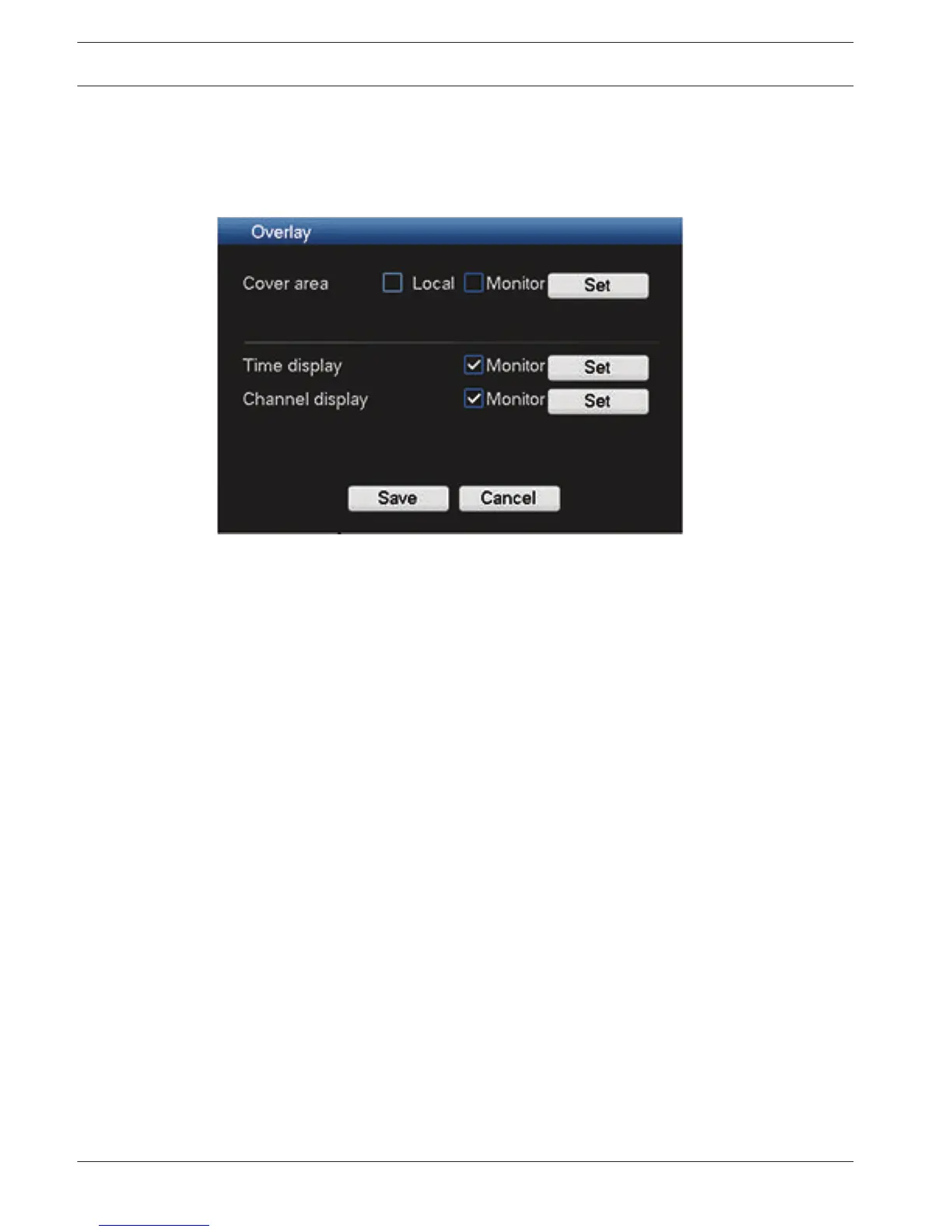 – Channel display: You can select system displays channel number or not when you
