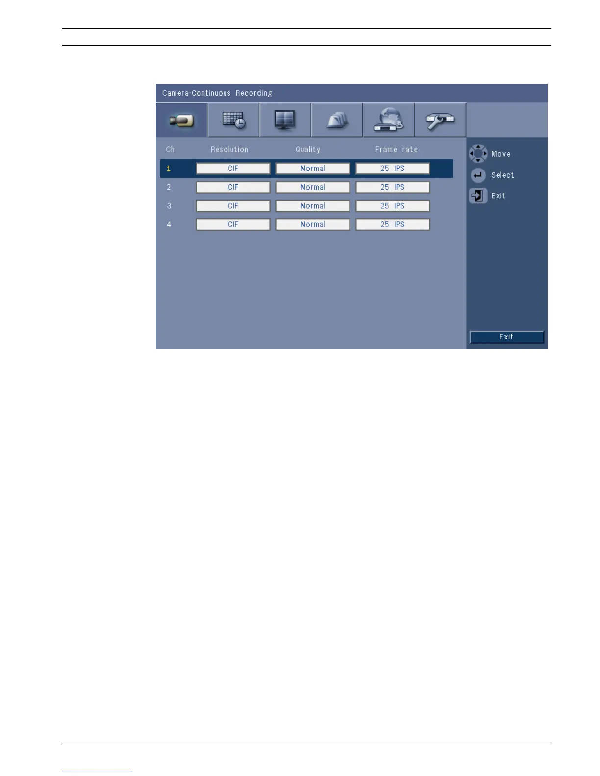 Figure 6.5 Camera - Continuous Recording