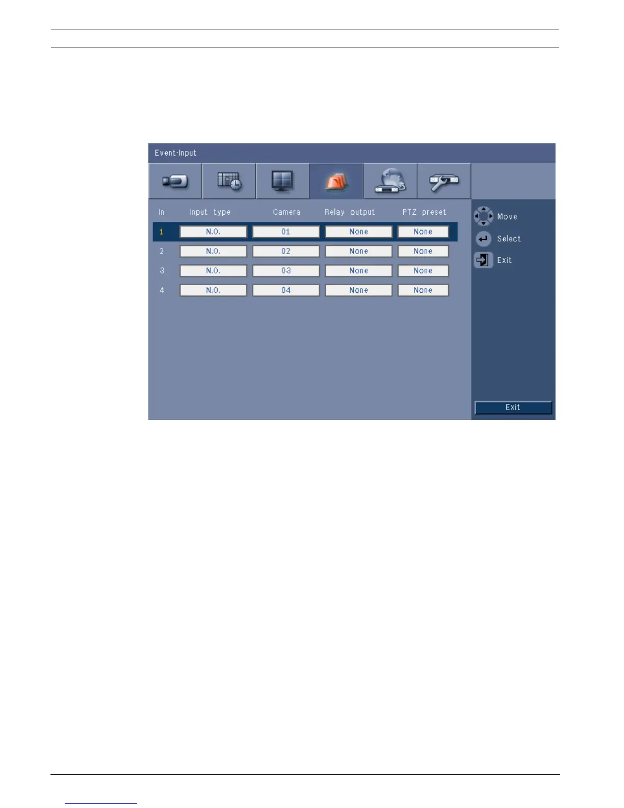 Set the camera between 1 and 4, which is set to an alarm based on the input.