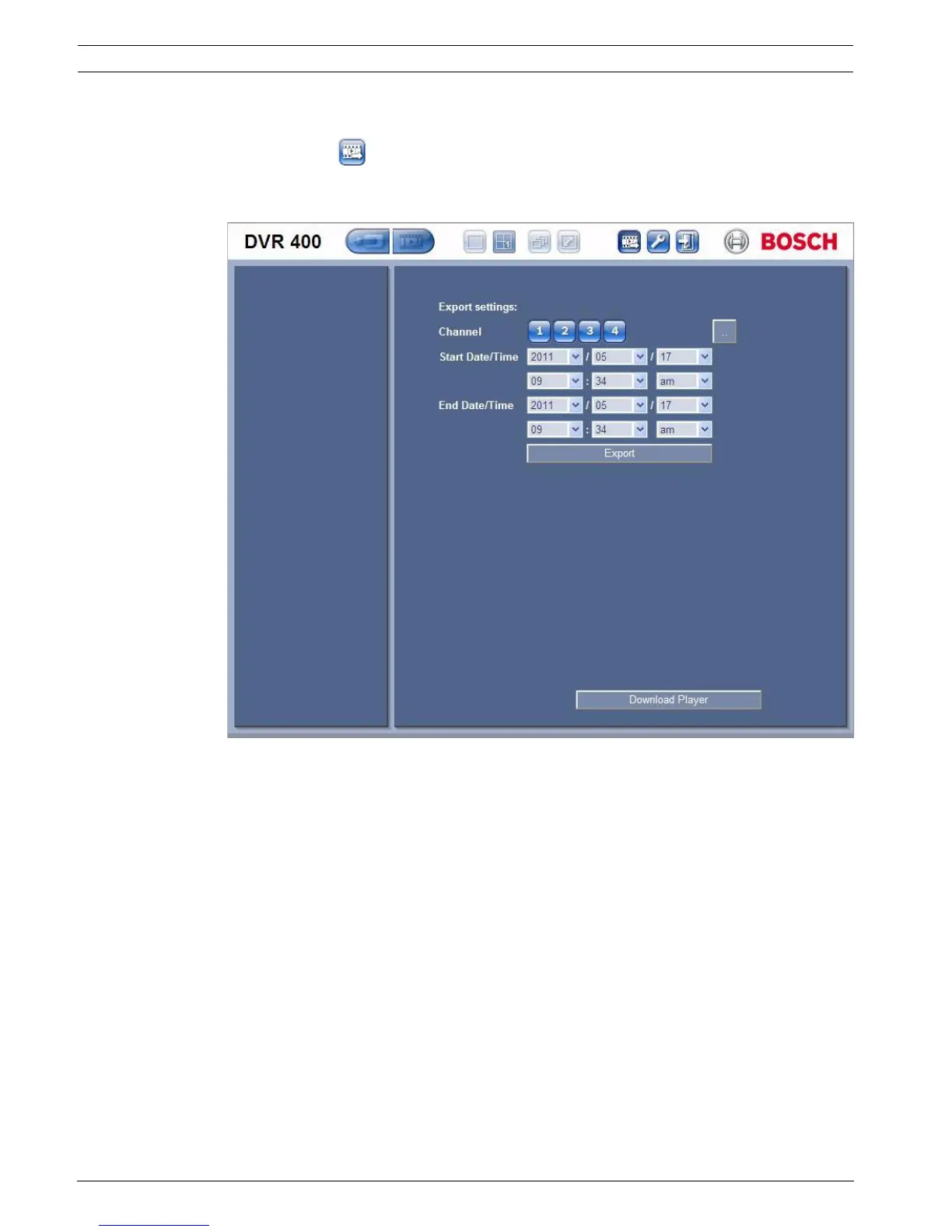 – choose the channel, audio, start and end date/times to export.
