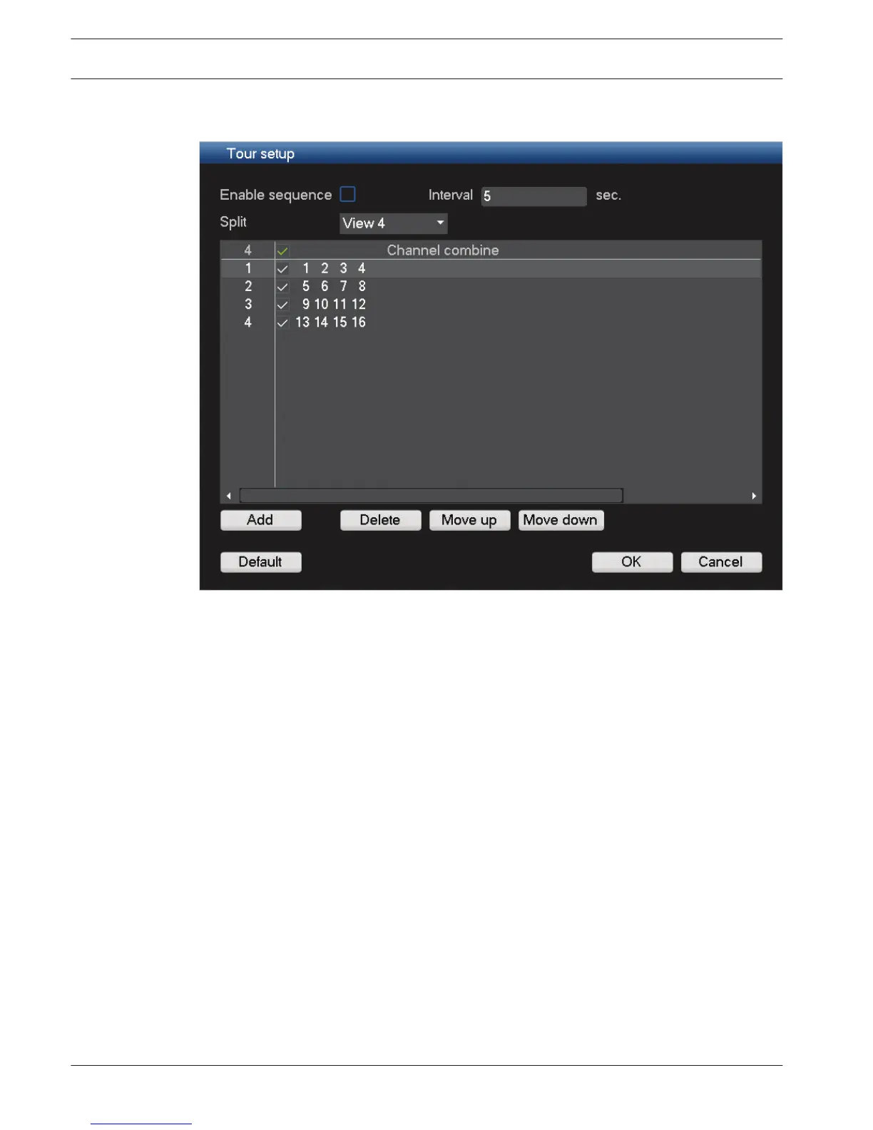 – Interval: This value ranges from 5 (default) to 120 seconds. In the tour sequence, use the