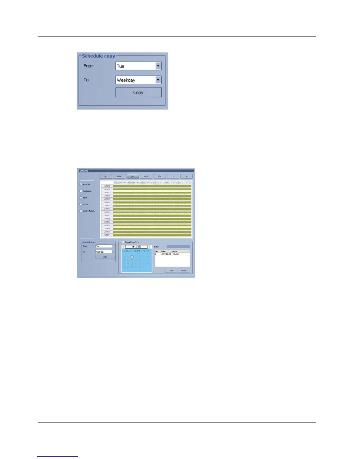 Figure 6.34 The Exception day setting window