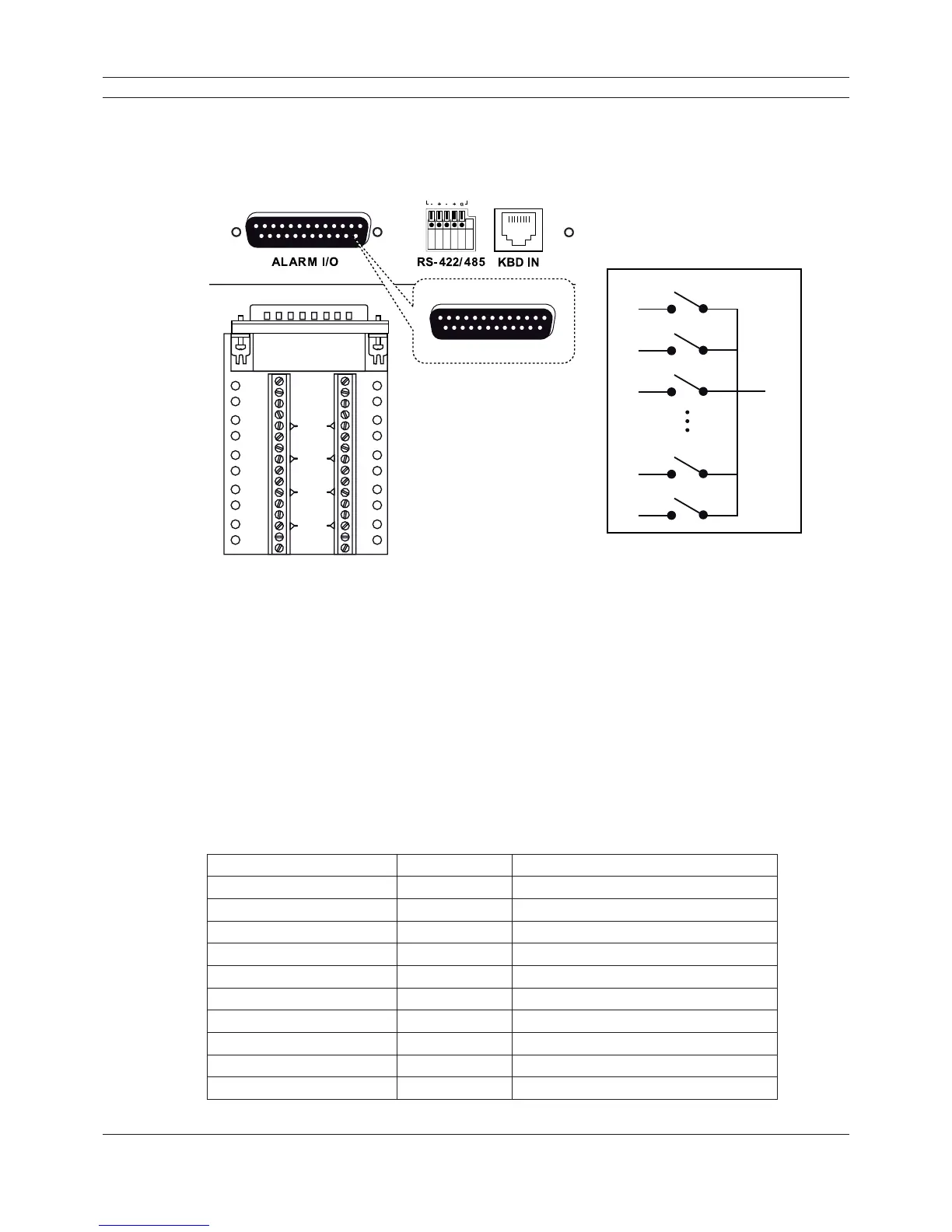 Alarm inputs and outputs are supplied via a 25-pole D-type socket. The screw terminal input/output