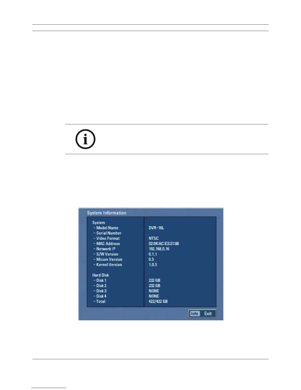 1. Press INFO or click the INFO icon in the system control bar. The system information window is