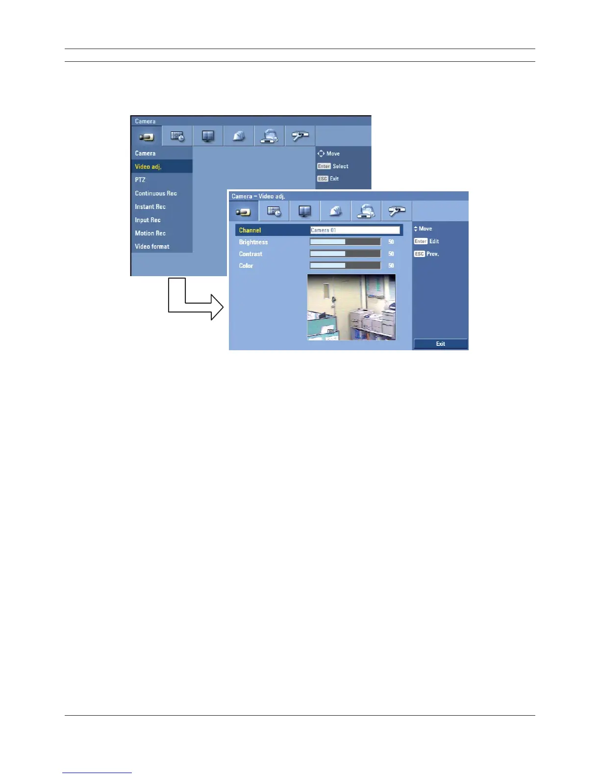Adjust the brightness, contrast and color settings of each camera channel. You can see the settings