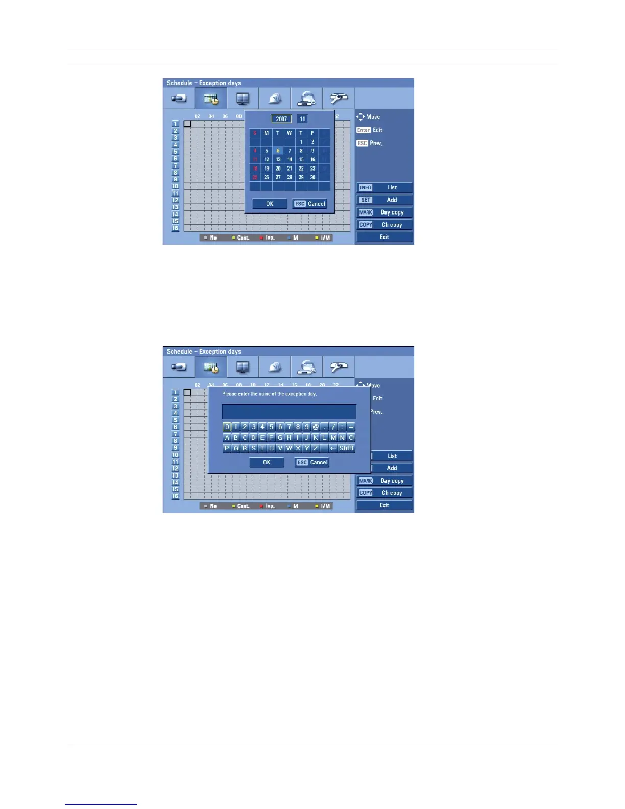 Figure 3.30 Exception days setup menu
