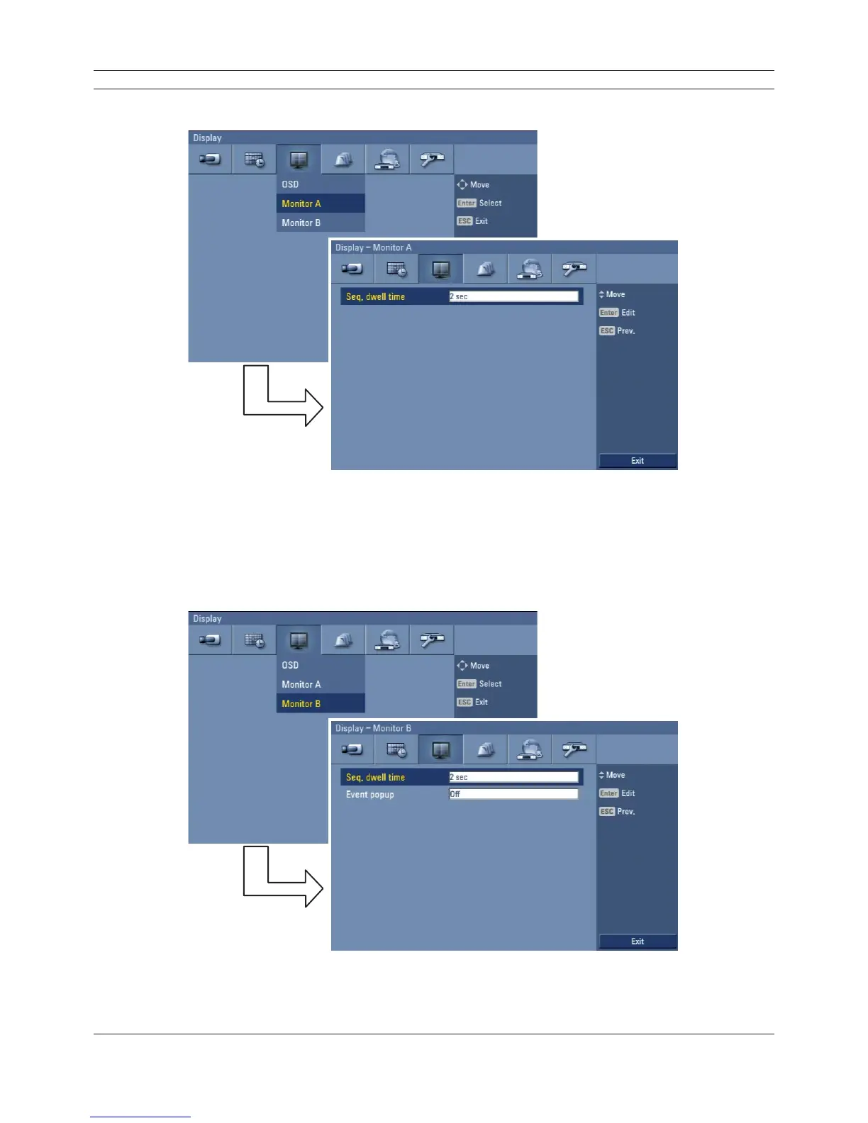 • Seq. dwell time: You can set the camera sequence time to 2 sec, 5 sec, 10 sec, 20 sec, 30 sec,
