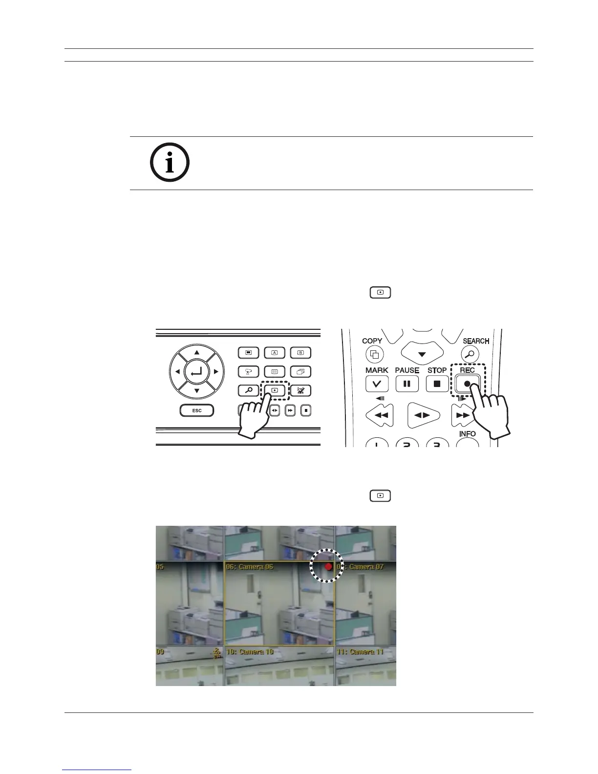 3. Press the REC button on the remote control or press