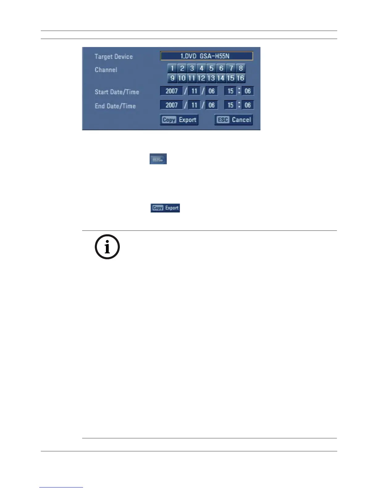 • You can also use the COPY button on the front panel for export func-