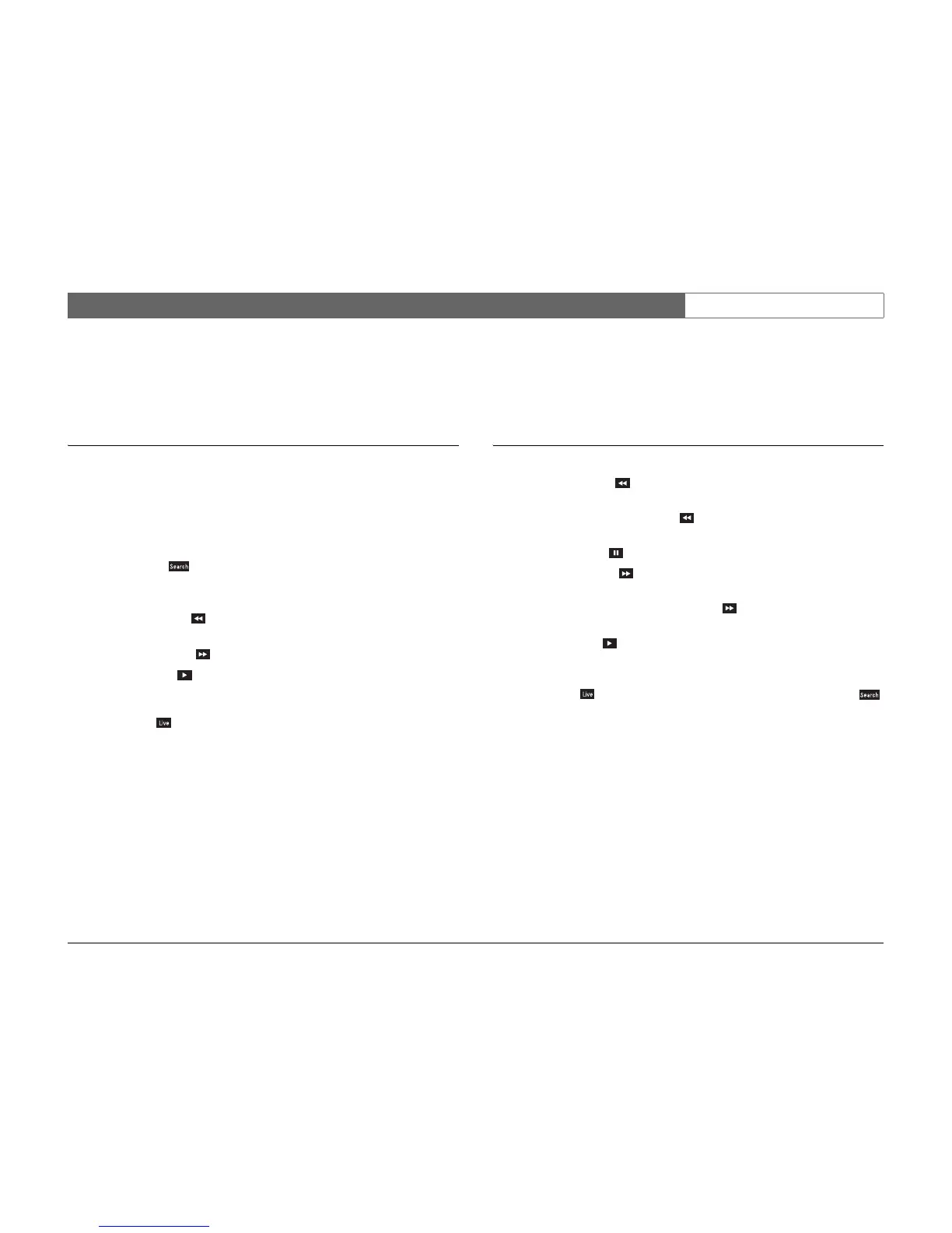 Press the live key to switch back to live viewing or press the search key