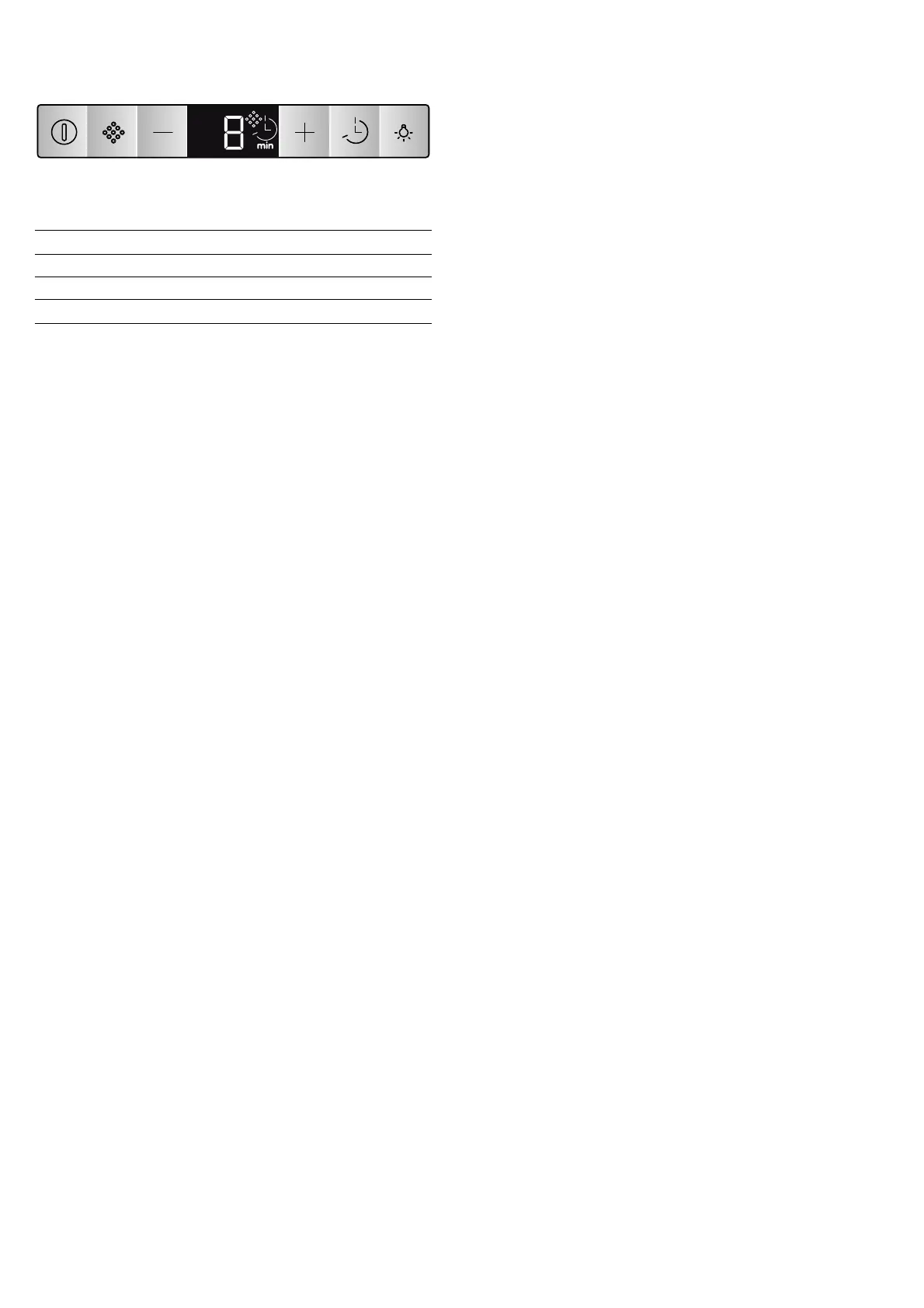 + and - buttons to set the required fan run-on time.