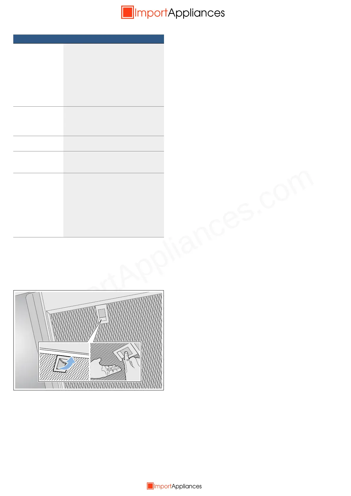 – Hold the metal grease filter level to prevent fat