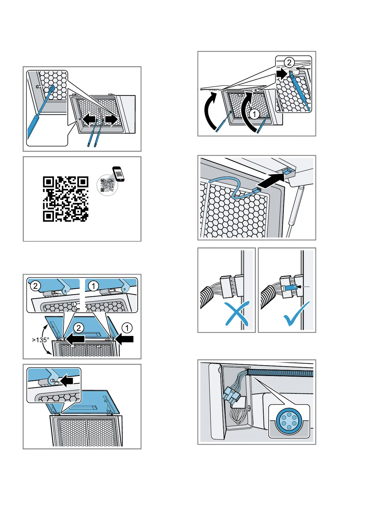 ‒ Hook the hinge plate from right to left into the