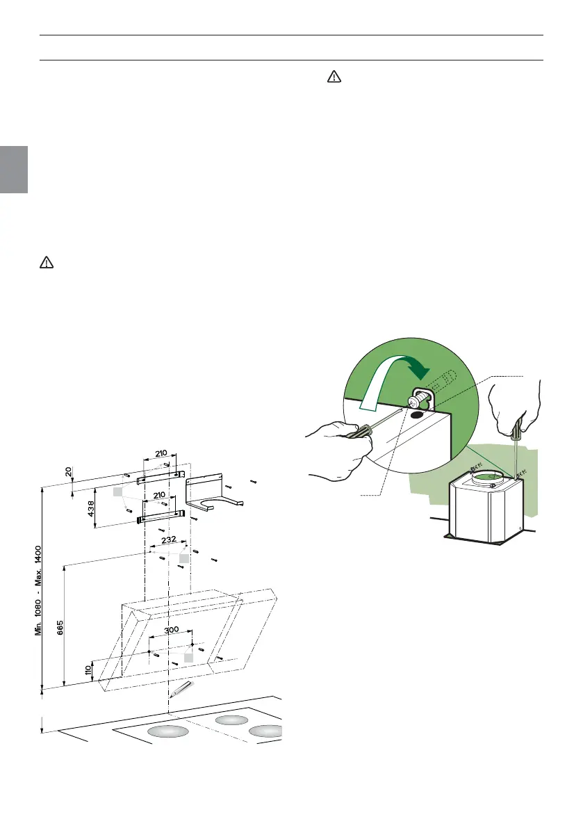 8. Bevor der Haubenkörper eingehakt wird, die 2