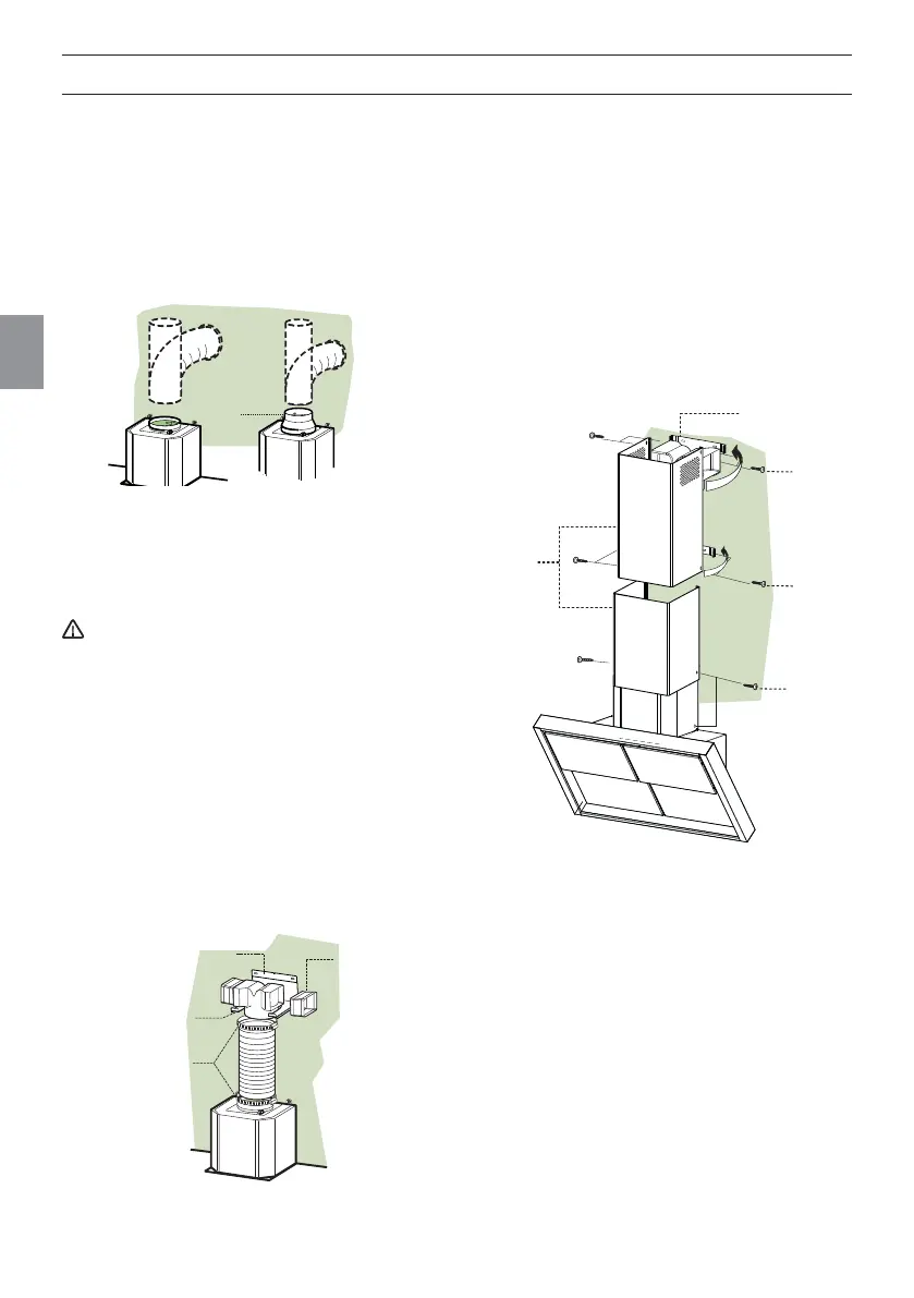 hood body outlet using either a pipe ø 150 mm.
